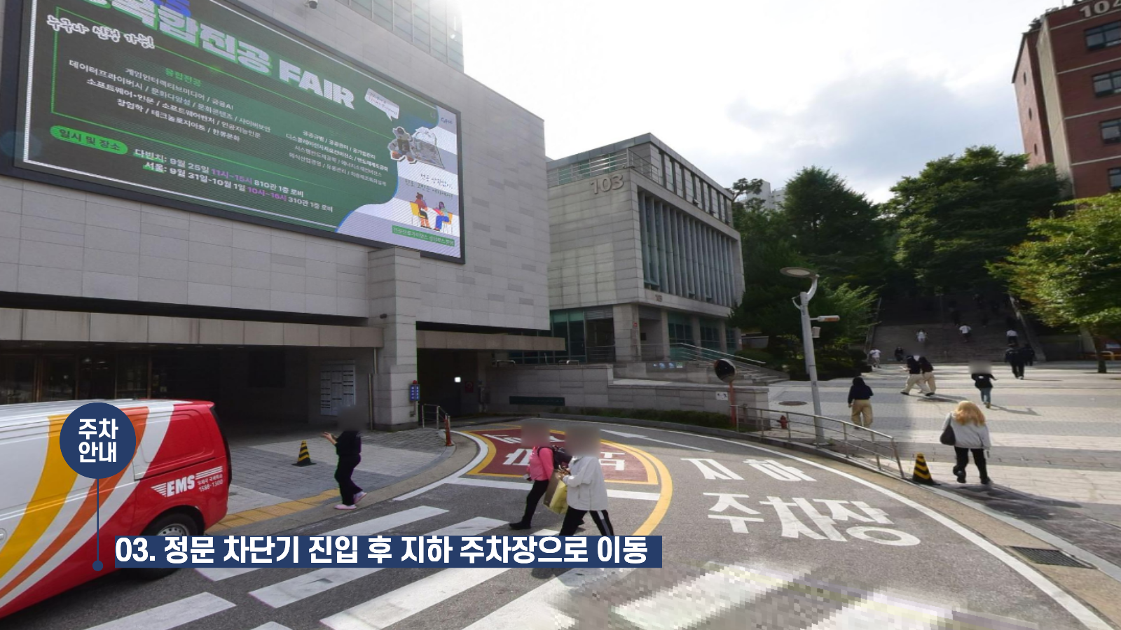 중앙대학교 정문 102관 주차장 (지하 2층~4층)